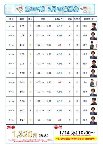 2月のゲーム練習会