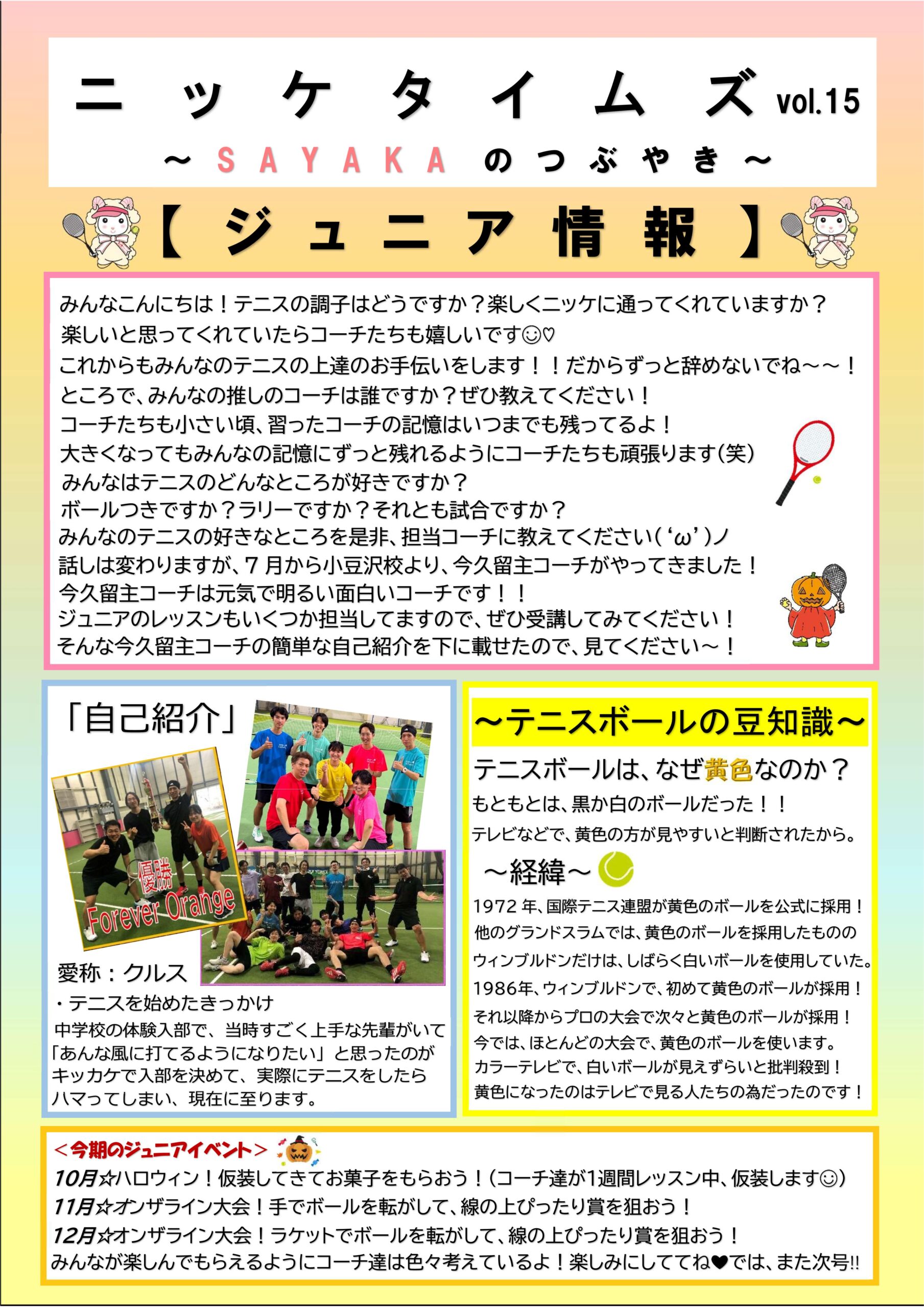 新着情報 セミオープン女子ダブルス 11月16日(日) 2025年10月18日 北村コーチのテーマレッスン ダブルスボレー 11月9日(日) 2025年10月11日 熱血 岩田道場 11月9日(日) 2025年10月11日 11月のゲーム練習会 11/21(金)A1に変更いたしました。 2025年10月10日 大変申し訳ありません。ダブルスチーム対抗戦、参加レベル変更ございます。 2025年10月07日 11月のゲーム練習会 2025年10月05日 コーチも参戦!! ダブルスチーム対抗戦 11月2日(日) 2025年10月04日 ジュニアカスタマーボイス! 2025年10月01日 2025年10.11 ニッケタイムズ vol.15 2025年09月29日 永井勇一ファイナルテニス 9月28日(日) 2025年09月29日 2 / 24«12345...1020...»最後 »