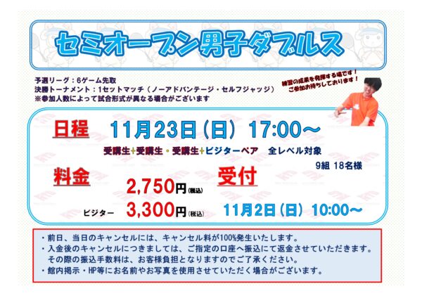 セミオープン男子ダブルス 11月23日(日)