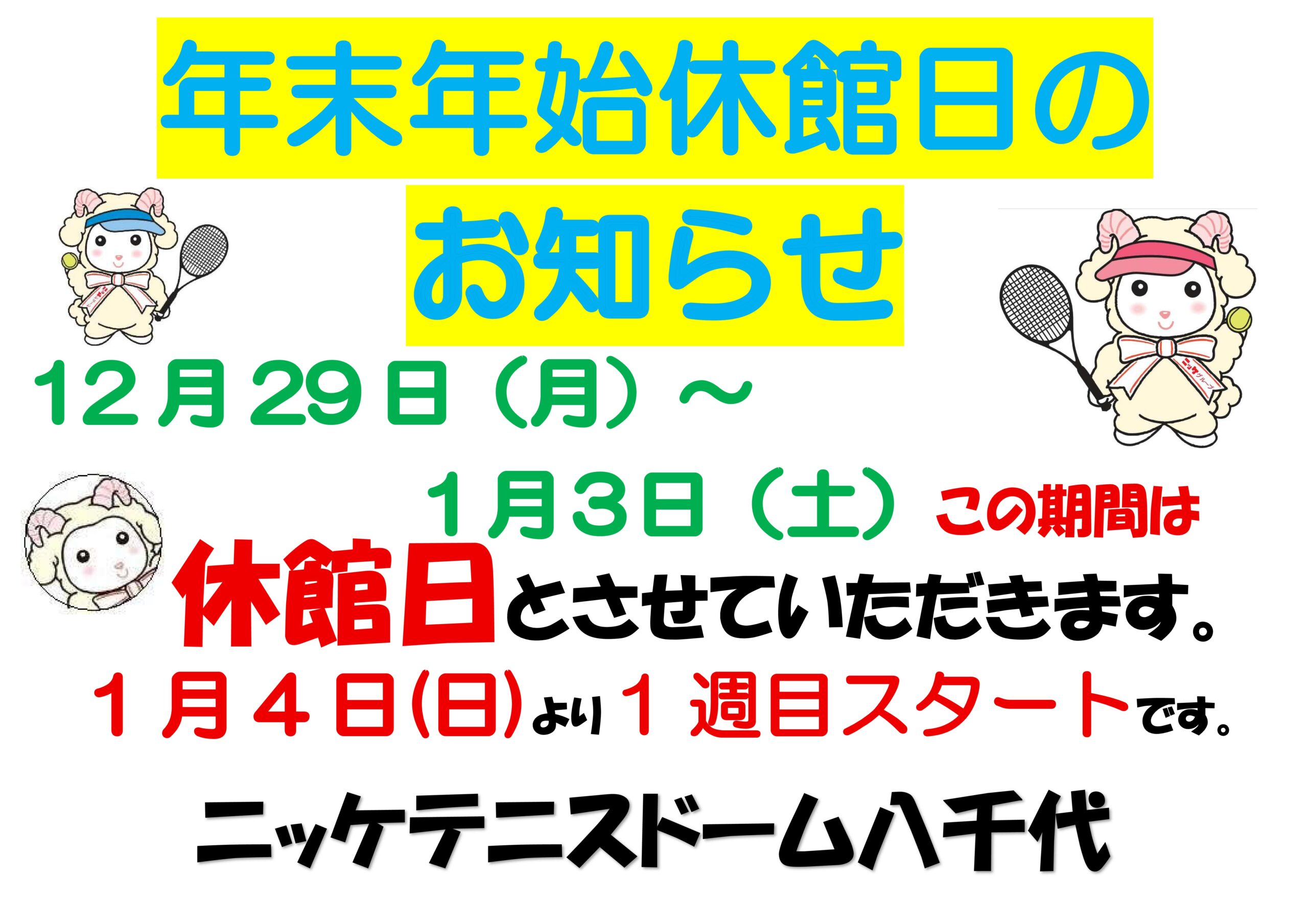 年末年始休館日のお知らせ