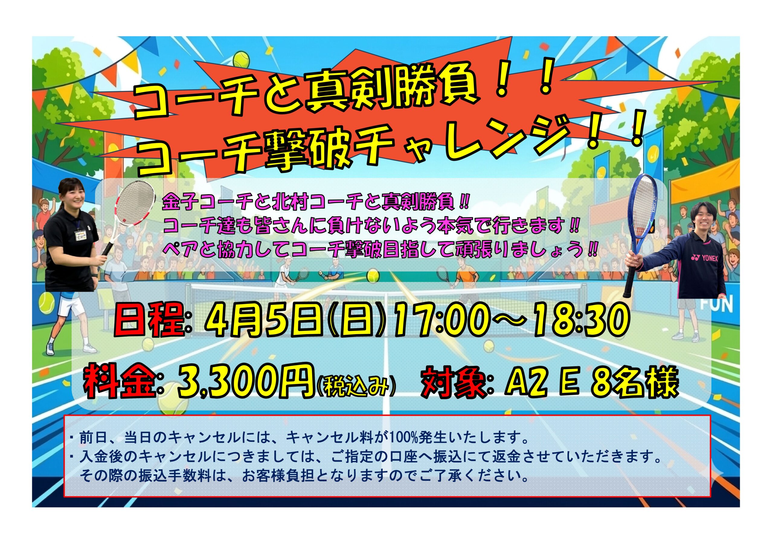イベント&新着情報 4月5日(日)開催!! コーチと真剣勝負!! コーチ撃破チャレンジ!! 2026年03月07日 « 3月1日(日)開催!! ニッケジュニア大会 S5 4月5日(日)開催!! 第3回 今久留主フェス 2026 »