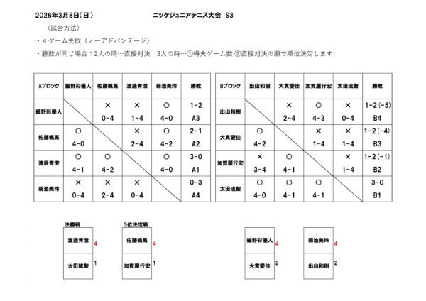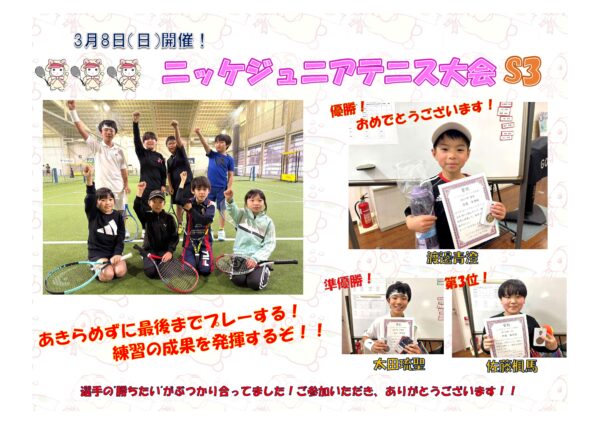 イベント&新着情報 3月8日(日)開催!! ニッケジュニア大会S3 2026年03月09日 « 4月5日(日)開催!! 第3回 今久留主フェス 2026 3月8日(日)開催!! ニッケジュニア大会S4 »