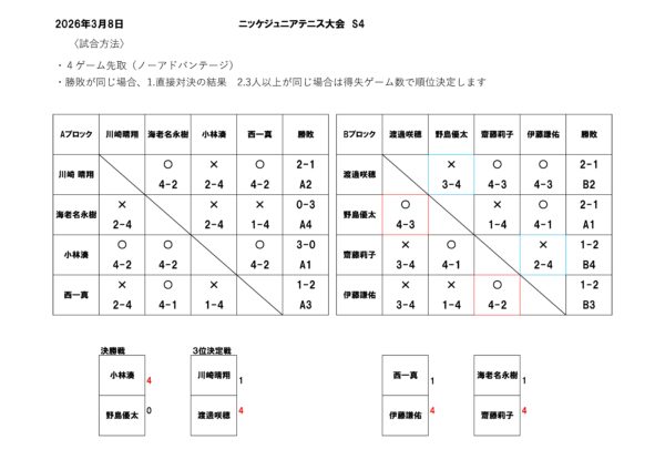 3月8日(日)開催!! ニッケジュニア大会S4