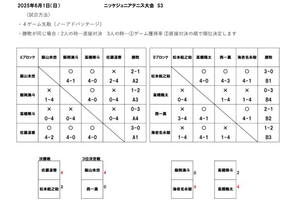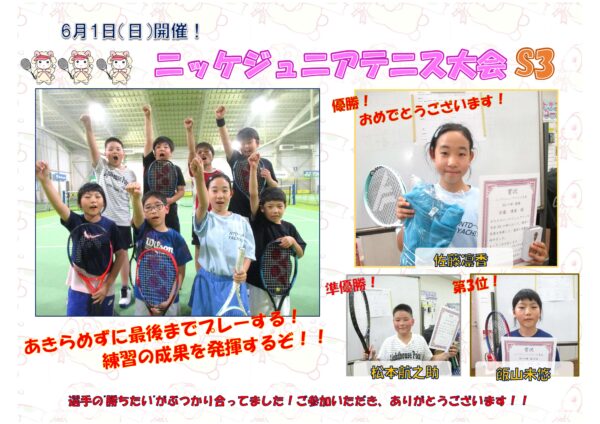 6月1日(日)開催!ニッケジュニアテニス大会 S3