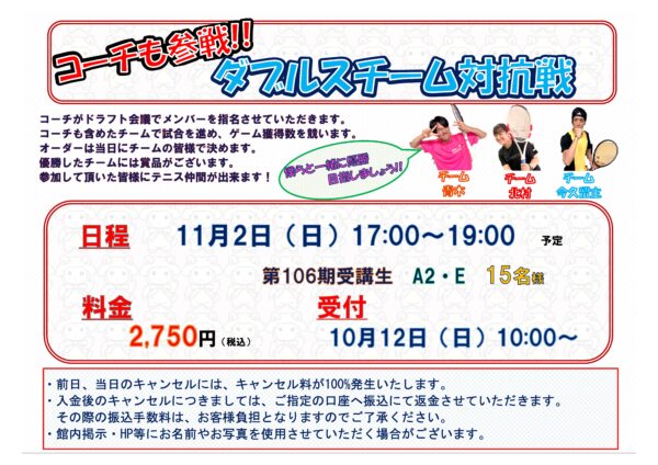 コーチも参戦!! ダブルスチーム対抗戦 11月2日(日)