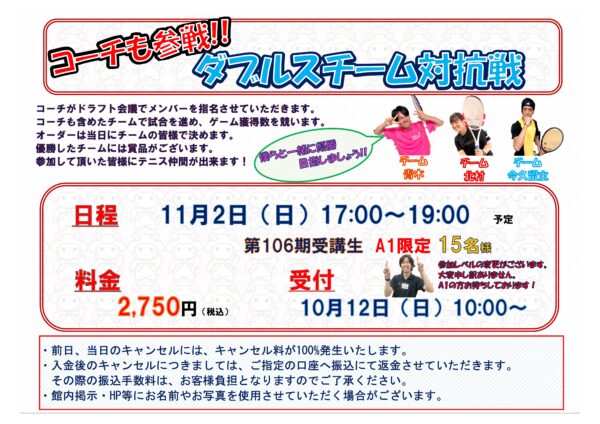 大変申し訳ありません。ダブルスチーム対抗戦、参加レベル変更ございます。