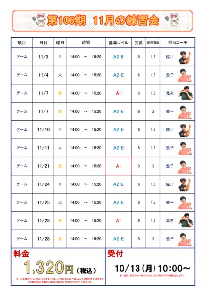 新着情報 11月のゲーム練習会 11/21(金)A1に変更いたしました。 2025年10月10日 « 大変申し訳ありません。ダブルスチーム対抗戦、参加レベル変更ございます。 熱血 岩田道場 11月9日(日) »