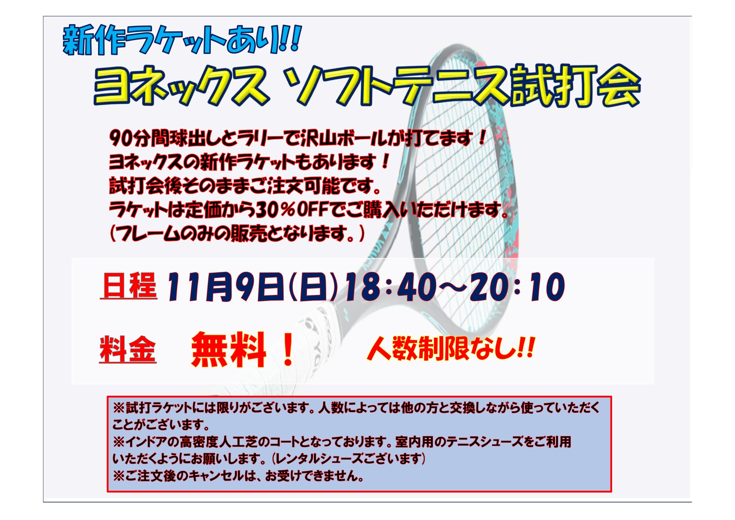 ヨネックス ソフトテニス試打会 11月9日(日)
