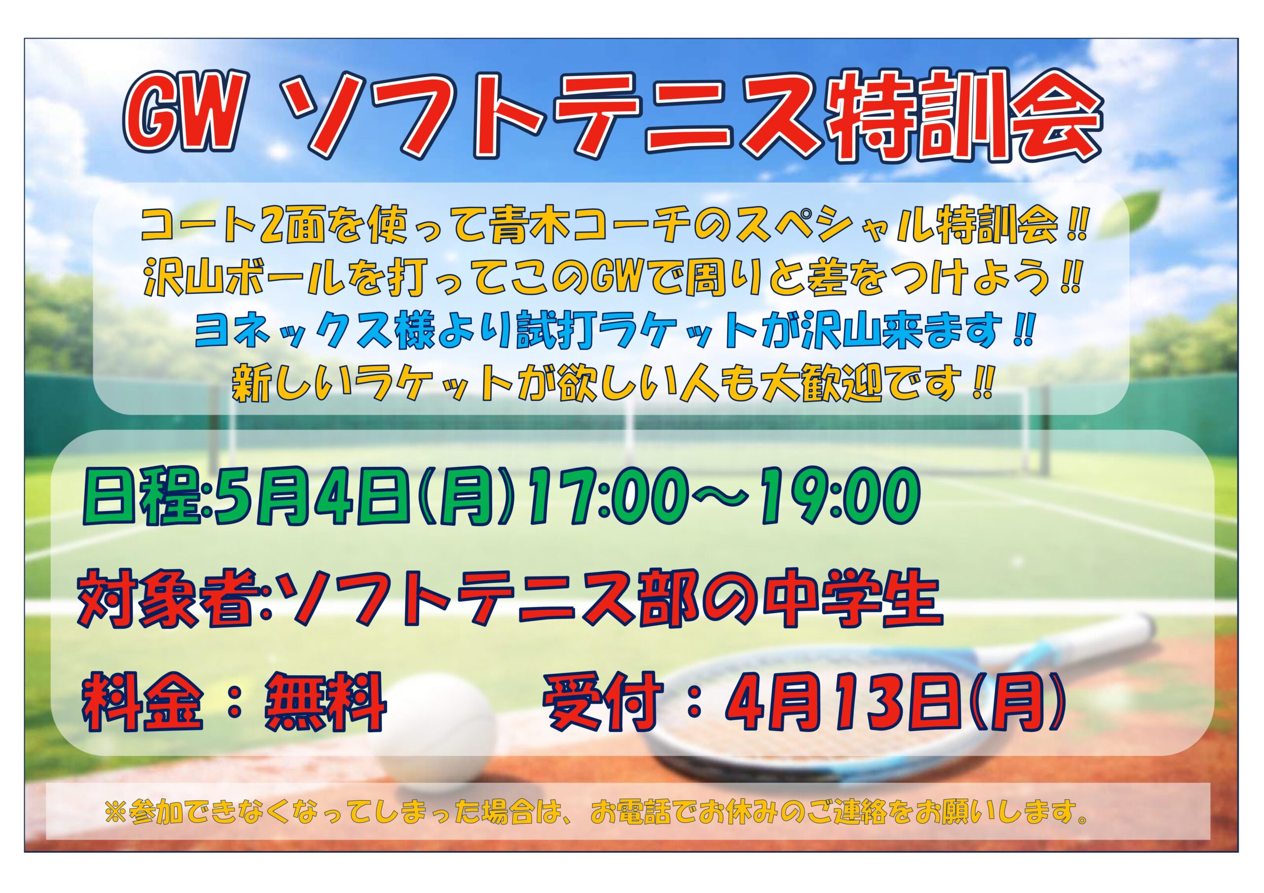 GW ソフトテニス特訓会 5/4(月)